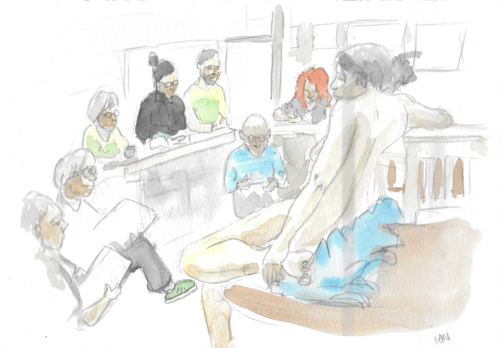 Les cours de nu est un temps suspendu où nous évoluons dans nos techniques de croquis mais aussi d’encre ou de peinture, dépendant du media choisi. C’est un moment à soi où l’oeil observe, et où chaque artiste peut progresser avec les commentaires bienveillants de son professeur.